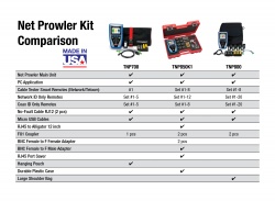 Net Prowler™ cabling and network tester is a valuable piece of test equipment for computer network technicians and IT workers. This multi-function tester makes time consuming tasks like setting up and troubleshooting networks faster and easier than ever before. The Net Prowler offers a full set of features including network mapping, link test, IPv4 & IPv6 ping testing, DHCP testing, DNS discovery, and URL Ping tests. LLDP identifies crucial Ethernet switch information, while IP Mapping discovers and displays network IP devices. The Net Prowler includes TDR technology for verifying and tracking cable integrity for opens, shorts, miswires, split pairs and reversed pinout as well as measuring cable length of network cables, telephone and coaxial cables. To keep track of test results for internal review or archival purposes, a USB interface connects the Net Prowler to the PC controller application. Test results can be downloaded from the Net Prowler and saved to your PC with the app and exported as CSV files or PDF files for printing.