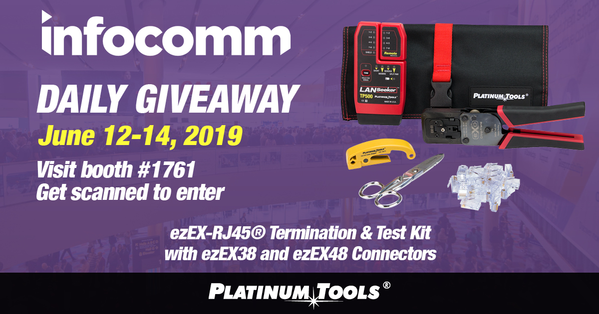 Platinum Tools is proud to announce that we will give away three new EXO ezEX-RJ45® Termination & Test Kits during Cedia Expo 2019.