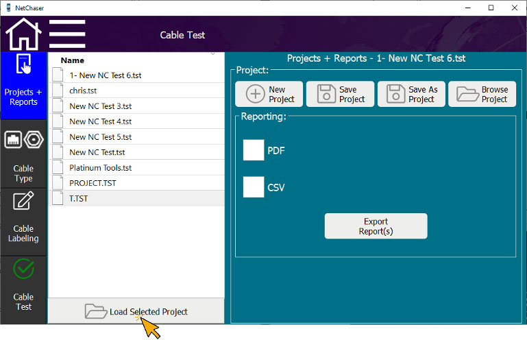 - Transfer tests from your Net Chaser and rename test labels on your PC