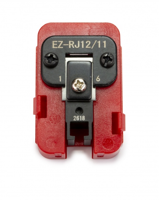 The EZ-RJ12/11 Die is used with the EXO Crimp Frame® to terminate EZ-RJ12/11 connectors. The EZ-RJ12/11 Die is interchangeable and reversible when used with EXO Crimp Frame. Designed for these new and improved EZ-RJ12/11 connectors. The EZ-RJ12/11 connectors are designed for terminating EZ style RJ11 or RJ12 connectors.